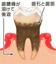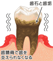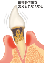 重度の歯周炎まで進行すると、歯を支える骨を失って歯が抜けてしまいます。