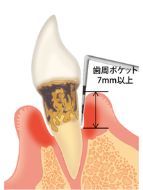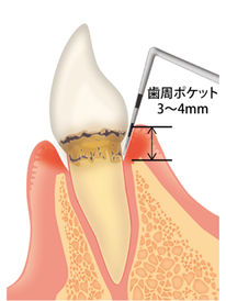 歯周病の検査は、プローブという器具を使って歯周ポケットの深さを測ることで歯周炎の進行度合いをチェックします。