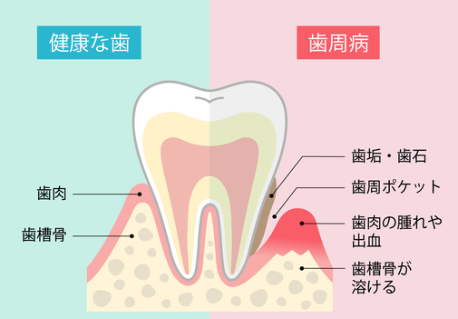 歯周病は、歯を支える歯肉や歯槽骨の組織をじわじわと破壊します。