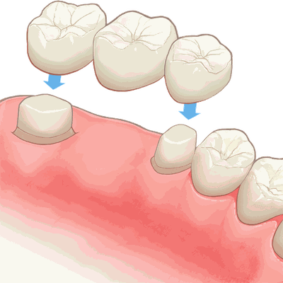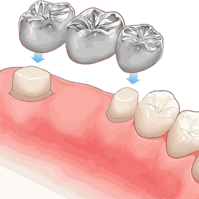 メタルブリッジは、失った歯を補うために両脇の歯を土台にして、橋のように人工の歯を装着するブリッジの一種で、金属を材料に作られたものです。