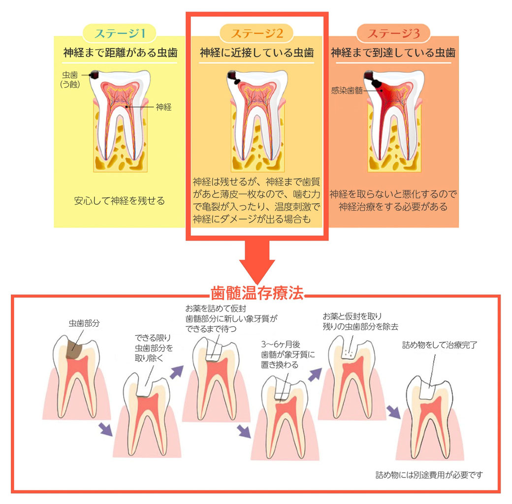 歯髄温存療法とは、深い虫歯であっても神経を残すことで歯が脆くなることを防ぎ、生きた歯を維持するための治療方法です。